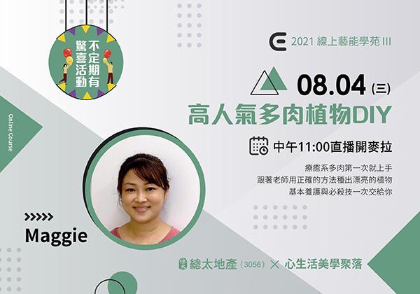 【藝能學苑線上直播課程 PART3】EP20 高人氣多肉植物DIY - Maggie (生活藝術事務所設計師) (2021-0804預告)