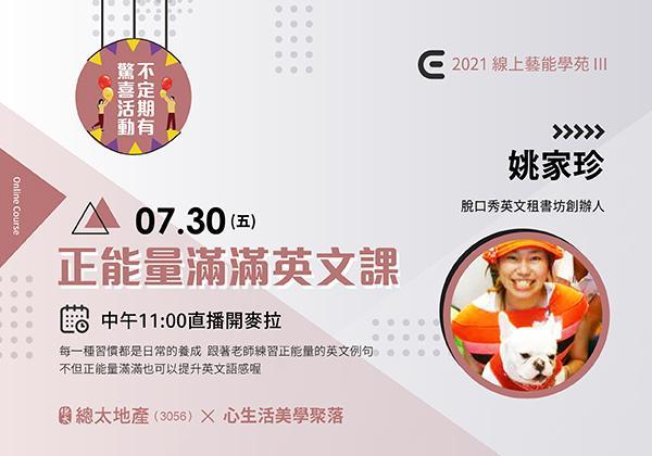 【藝能學苑線上直播課程 PART3】EP19 正能量滿滿英文課 - 姚家珍(脫口秀英文租書坊創辦人) (2021-0730預告)