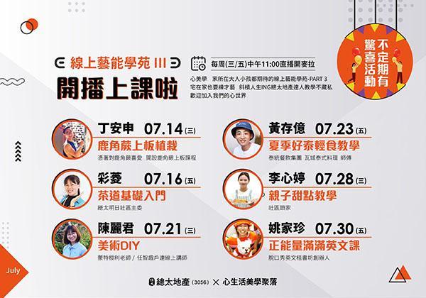【藝能學苑線上直播課程PART3】節目表 (2021-0714~0730活動預告)